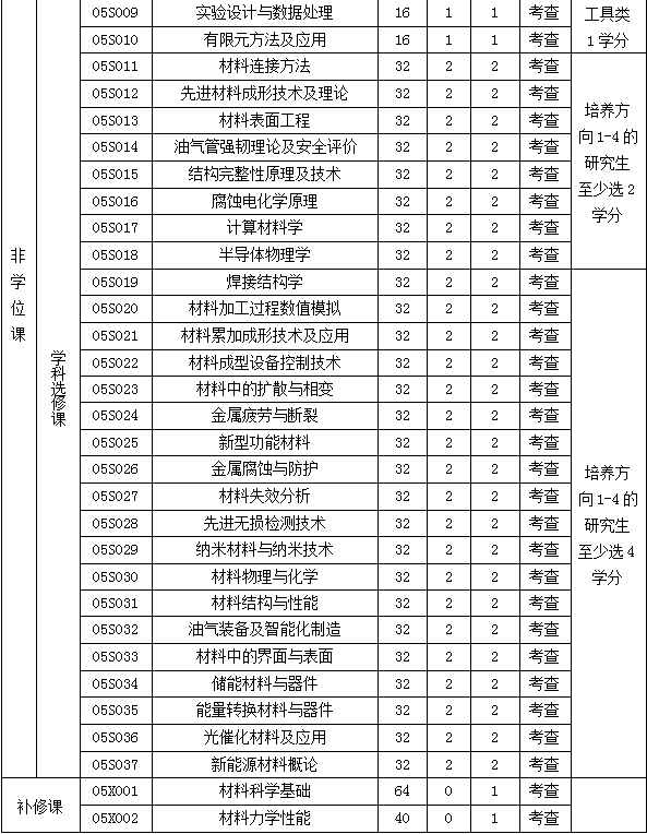 2.补修课:不计学分。跨学科、专业或同等学历录取的培养方向1-4的研究生,须补修材料类本科专业《材料科学基础》和《材料力学性能》2门主干课程,并列入公司产品计划。