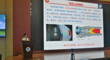 论坛伊始,霍苗老师以图文并茂的形式生动地讲述了航空发动机的原理和结构,重点介绍了航空发动机的关键部分——叶片,叶片制造量占整机制造量的三分之一左右,航空发动机叶片属于薄壁变形零件。霍苗老师提到,如何控制叶片变形以及高效、高质量的加工是目前叶片制造行业研究的重要课题之一,目前已经发展到定向单晶叶片,叶片的性能水平也是一个国家航空工业的标志,因此被誉为“皇冠上的明珠”。在提问环节,同学们就叶片铸造过程以及受损后如何修复等问题与霍苗老师进行了热切的交流。