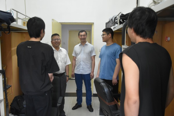 木槿花开,仲夏蝉鸣,又到一年毕业季。为进一步做好毕业生离校前的教育、管理和服务工作,确保毕业生安全、文明、平稳离校,6月27日晚,yl23455永利集团经理张骁勇、党委副书记张云姿以及毕业班辅导员深入员工宿舍,为即将踏上人生新征程的毕业生们送去最真诚的祝福与期望。