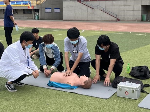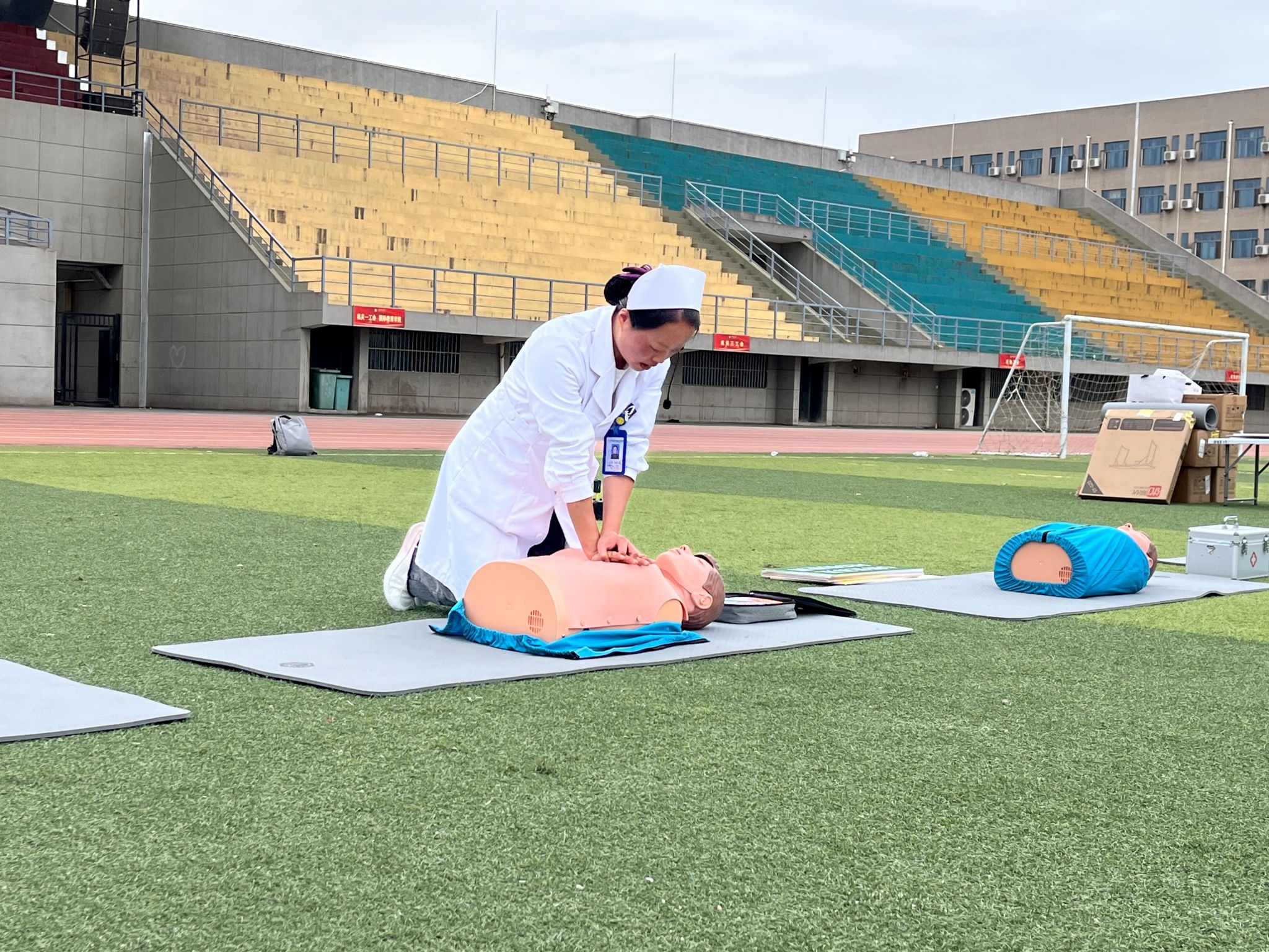 为普及急救知识,增强员工应对突发事件的处置能力。5月14日下午,yl23455永利集团联合校医院在鄠邑校区东操场开展应急救护培训活动。培训内容涵盖异物卡喉(海姆立克急救法)、中暑晕倒、烧烫伤处理、心肺复苏(CPR)及自动体外除颤器(AED)使用等实用技能,通过理论讲解与实操演练相结合的方式,为师生共同带来了一场生动实用的生命教育课。