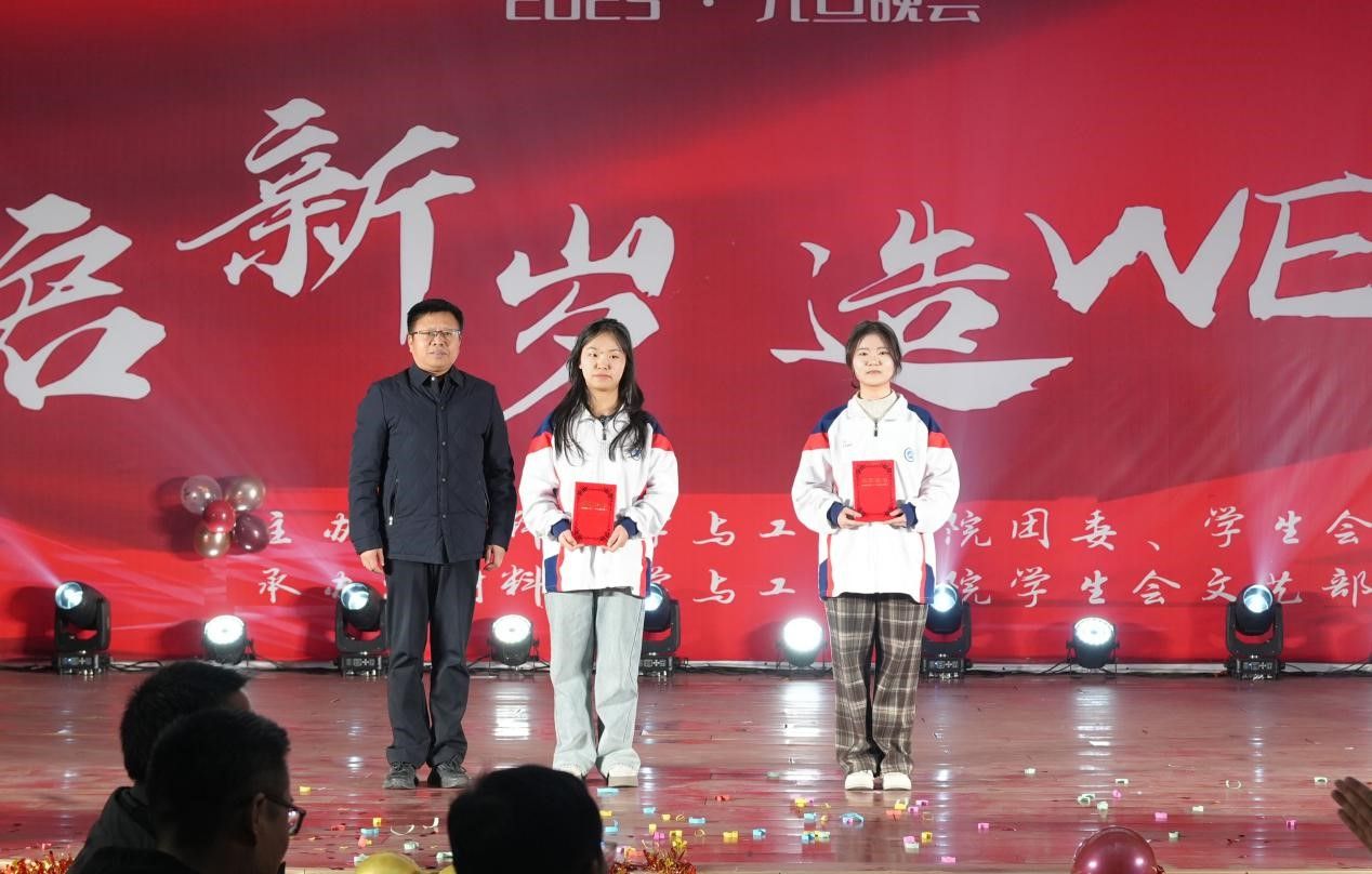 晚会期间,张骁勇为学院2024年获得国家奖学金、国家励志奖学金、王涛英才奖学金、学业奖学金等员工代表进行颁奖,王亮为学院2024年在学科竞赛中取得优异成绩的团队及个人进行了颁奖。