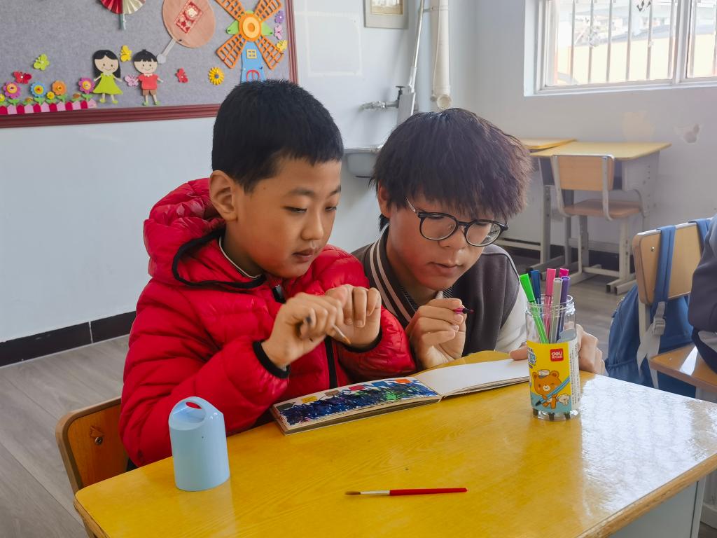 志愿者们陪着孩子们一起看书、画画,和孩子们玩起了“剪刀石头布”和“我比手语你来猜”的游戏,一时间,整个教室充满了孩子们和志愿者们的欢声笑语,其乐融融。通过游戏互动,也拉近了志愿者与孩子们心与心的距离。志愿者们说:“小朋友是活泼可爱的小天使,和他们一起互动、学习感觉非常开心。我希望自己能够更加深入参与到特殊教育志愿服务活动中,带给小朋友更多快乐!”