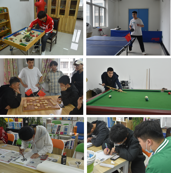 10月2日至10月6日,学院组织留校员工进行了乒乓球比赛、台球比赛、硬笔书法大赛、象棋比赛、五子棋比赛、模拟沙盘等文体活动。通过各种比赛,让更多同学走出宿舍、走进操场,增强体育锻炼和团队协作意识,增进师生之间的交流和各民族同学之间的友谊,营造了欢乐温馨、积极向上的双节氛围。