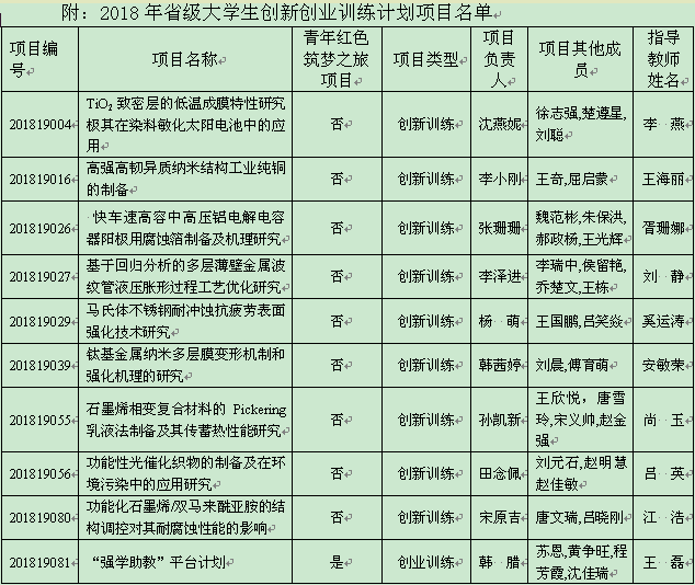 现将获批的10项省级立项项目和4项校级立项项目名单予以公布,希望项目组成员和指导教师积极投入到老员工创新创业训练计划项目工作中去,保质保量,按时完成项目研究并取得好成果。