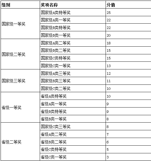 员工本科阶段参加与学业相关的国内权威科研竞赛并获得省部级二等奖及以上奖励(国际赛事参照执行,但不得低于国内赛事相关要求),各级学科竞赛获奖按下表进行加分: