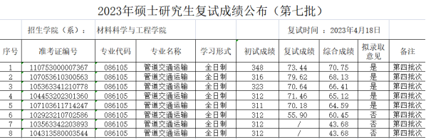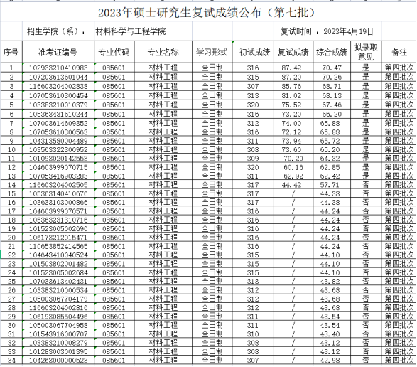 2023年硕士研究生复试成绩(第
