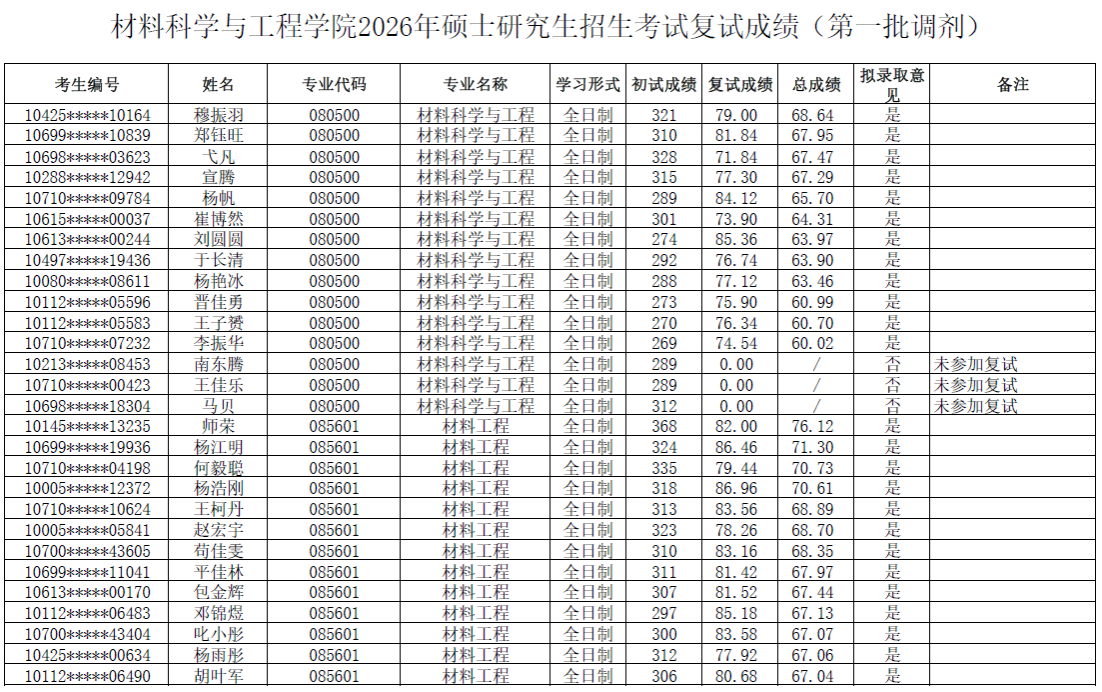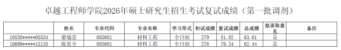 yl23455永利集团2026年硕士研究生复试成绩公布(第一批调剂)